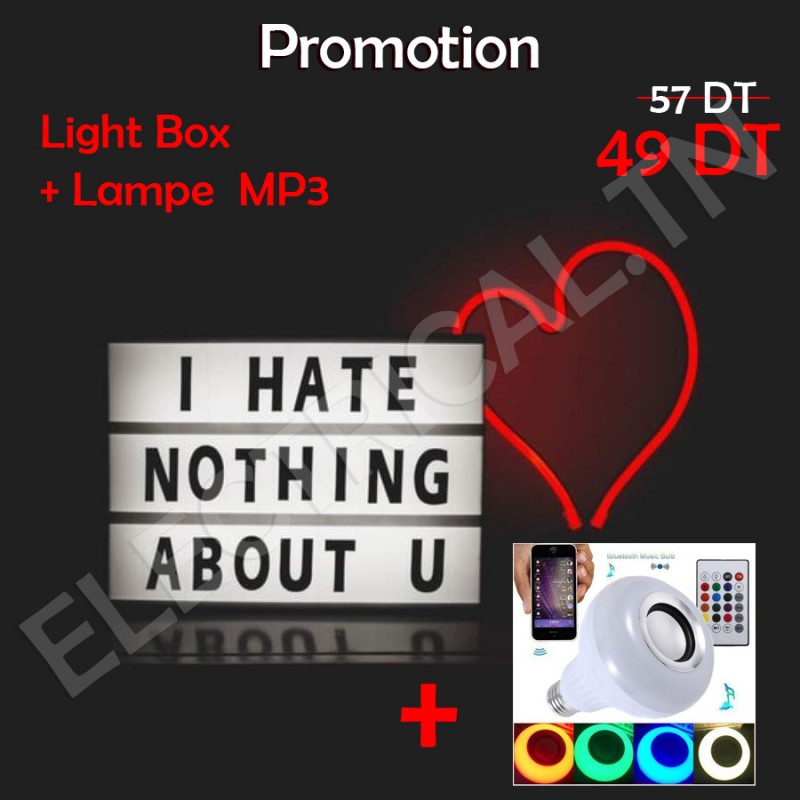 PACK Boîte lumineuse LED A4 – Lightbox ET AMPOULE LED E27 - 220V - RGB - BLUETOOTH - HAUT PARLEUR
